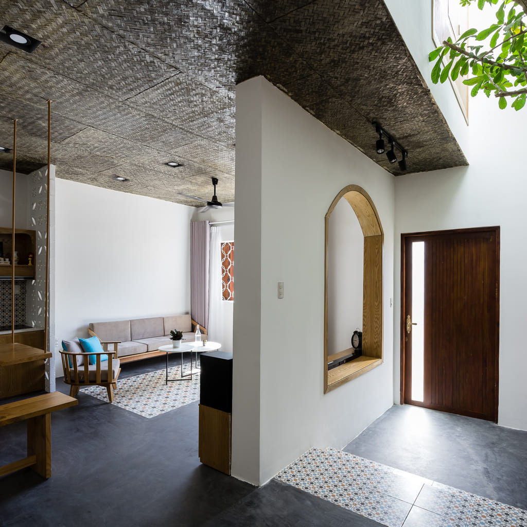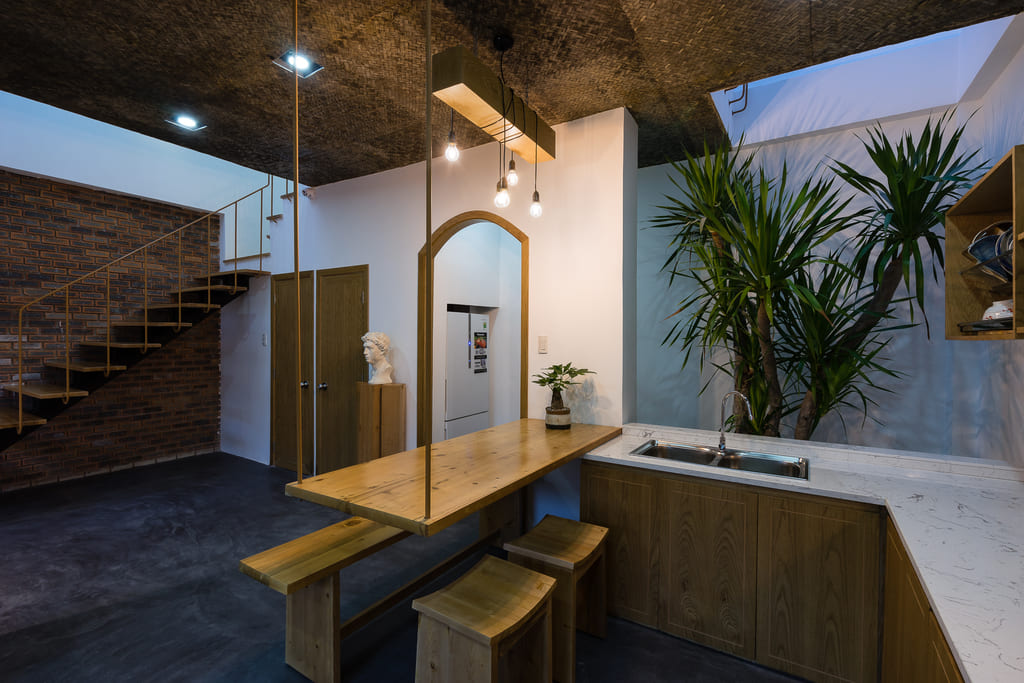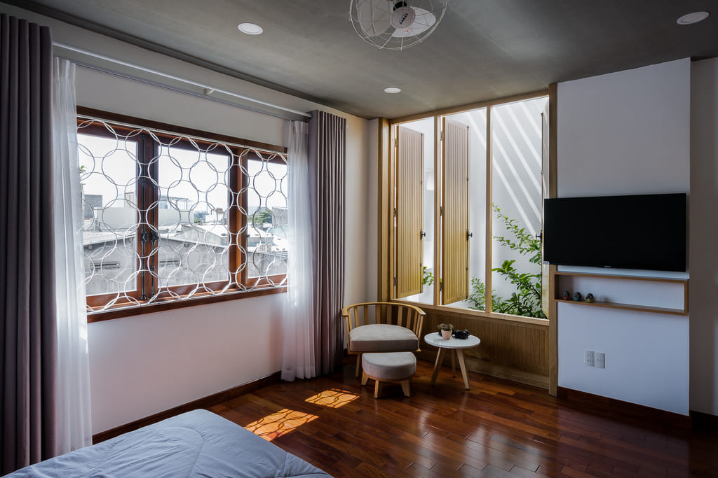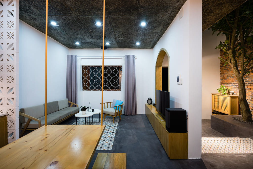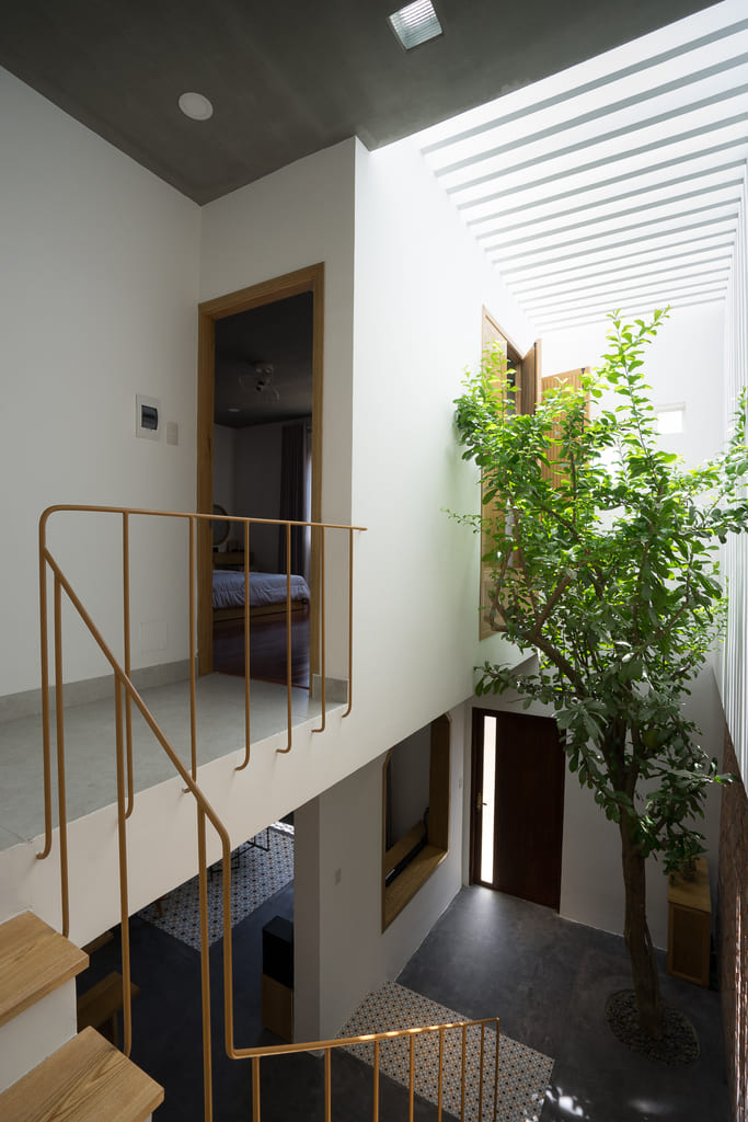 7×7 House was inspired and created from the idea of a tropical space as it is located in Danang, a central coastal city of Vietnam where the climate is quite severe in the way it varies significantly between the sunny season and the rainy one. This city is also influenced by a lot of tropical storms every year. Besides, the local people, as well as their lifestyle, is affected by their main religion, known as Buddhism. Thus, they lead an open and friendly life.