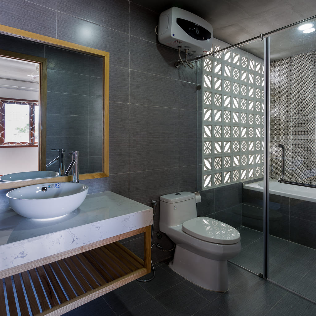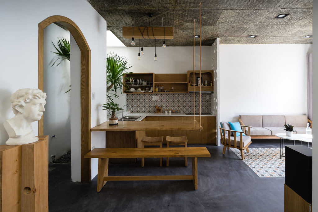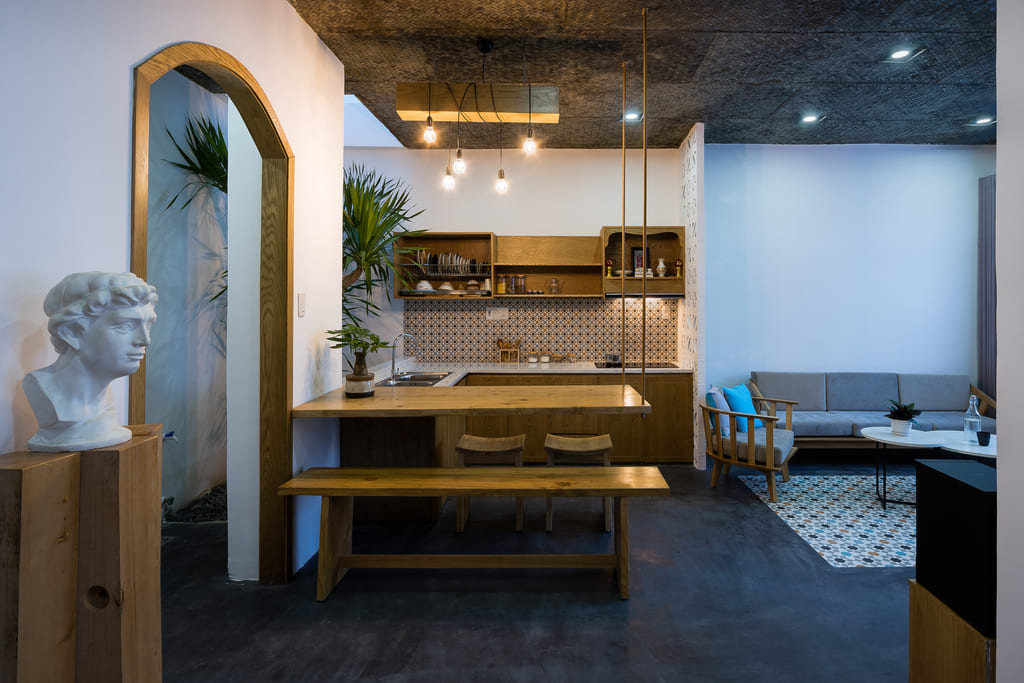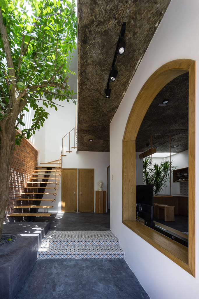 7×7 House was inspired and created from the idea of a tropical space as it is located in Danang, a central coastal city of Vietnam where the climate is quite severe in the way it varies significantly between the sunny season and the rainy one. This city is also influenced by a lot of tropical storms every year. Besides, the local people, as well as their lifestyle, is affected by their main religion, known as Buddhism. Thus, they lead an open and friendly life.