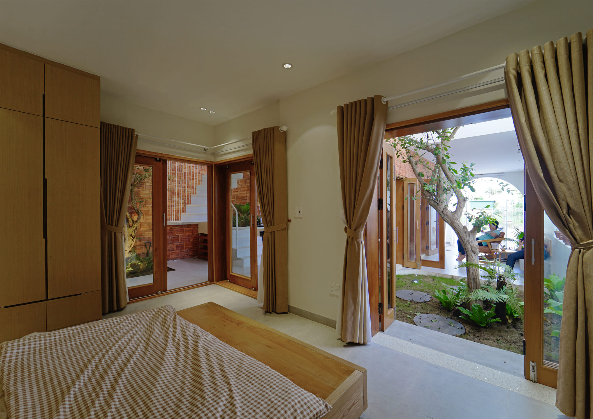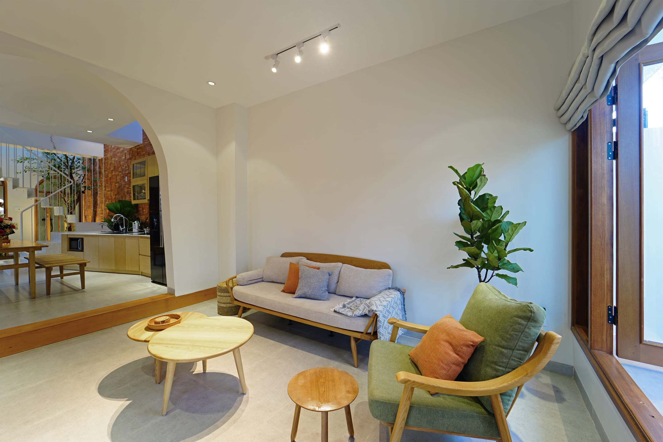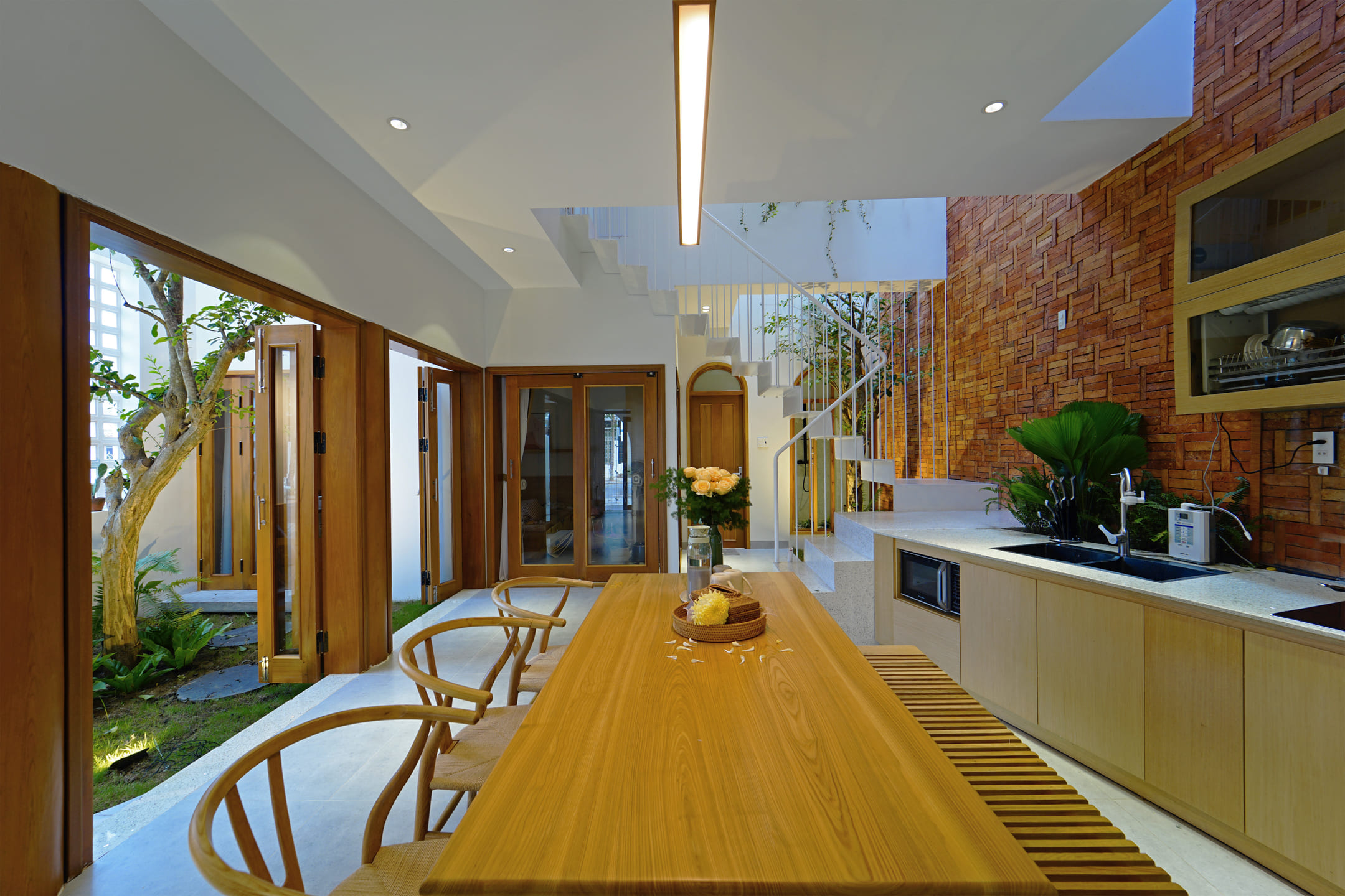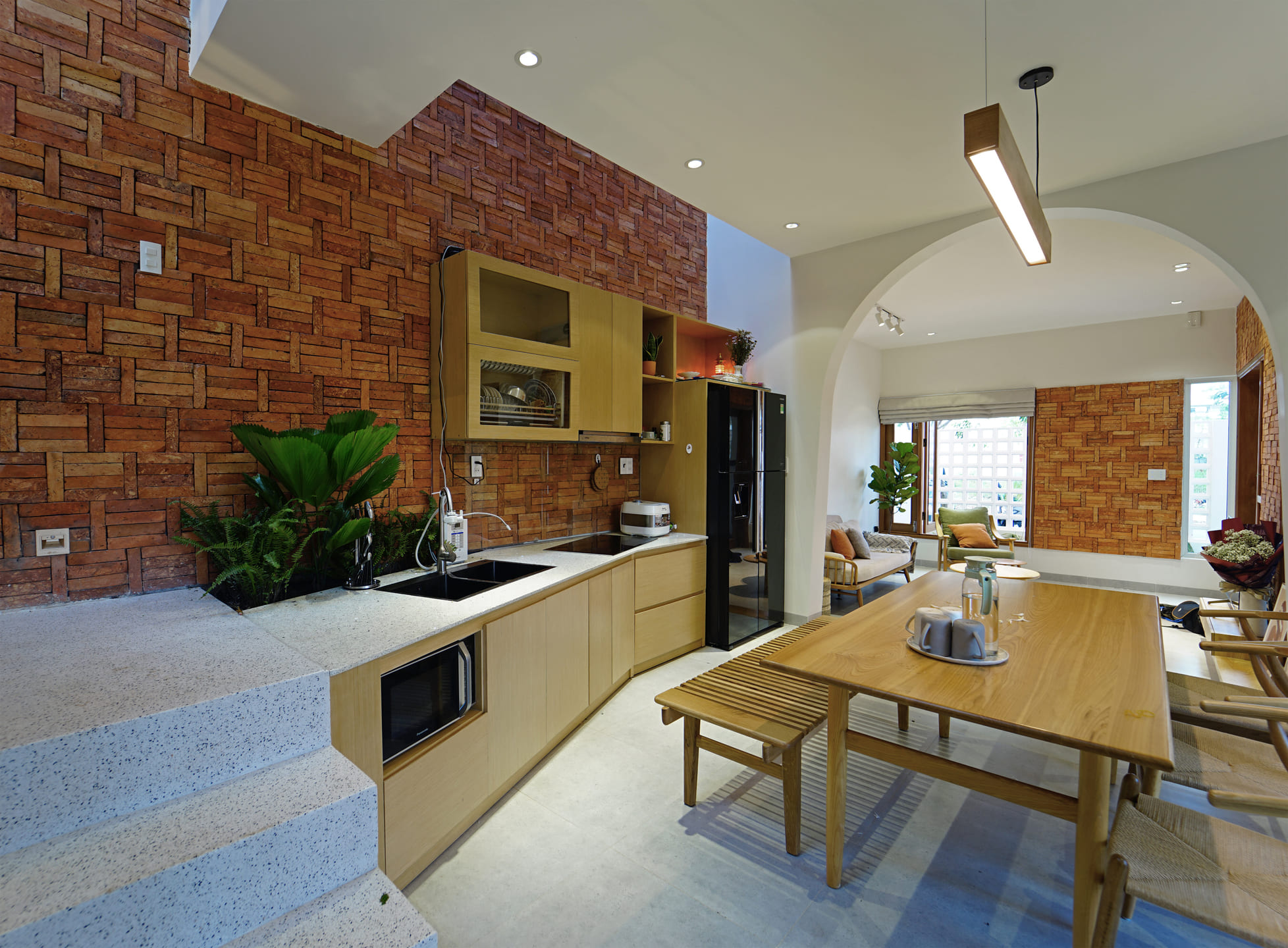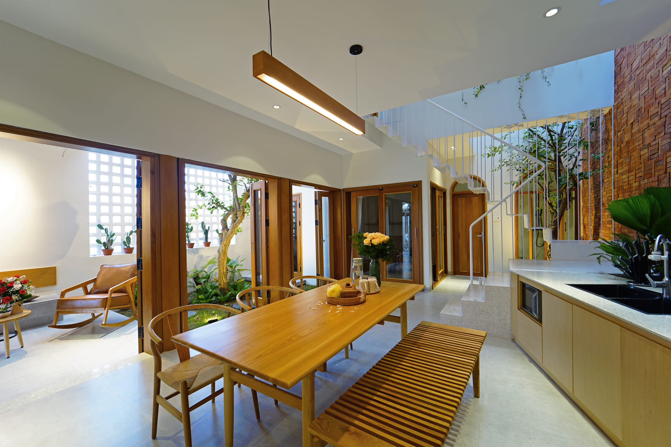 It is known that townhouses are a very popular concept in Vietnam. The rows of houses are often close and have limited space in contact with the environment. Therefore, the most important requirement of the owner before designing is a construction that is not only closely related to the elements of nature but also remains private.