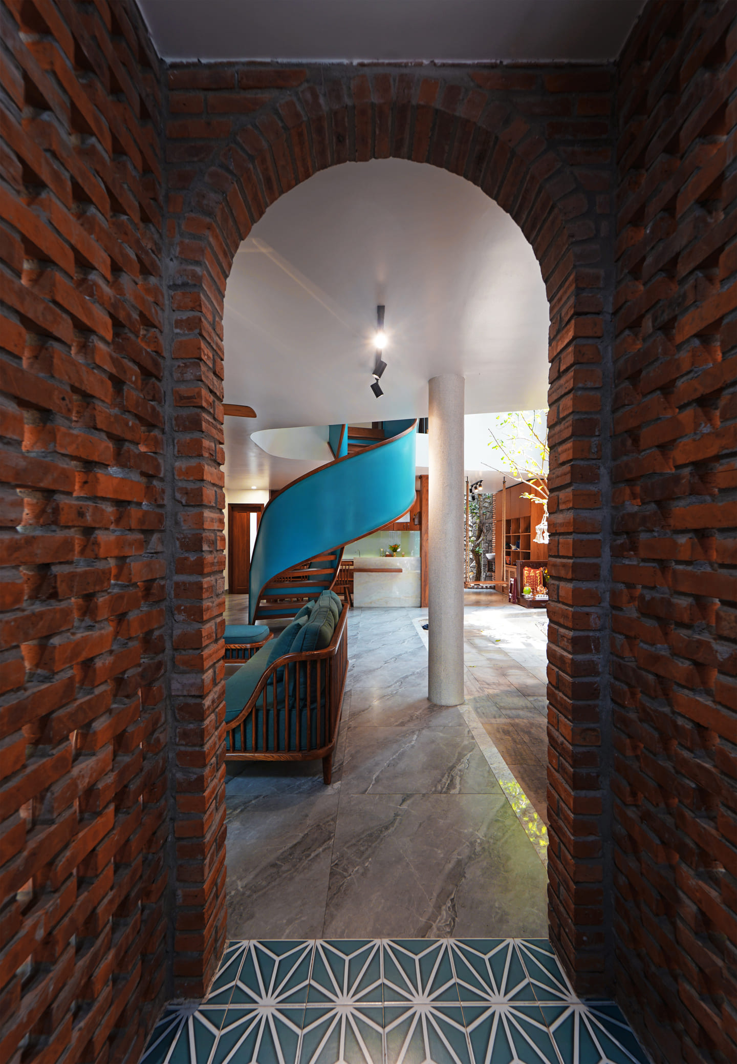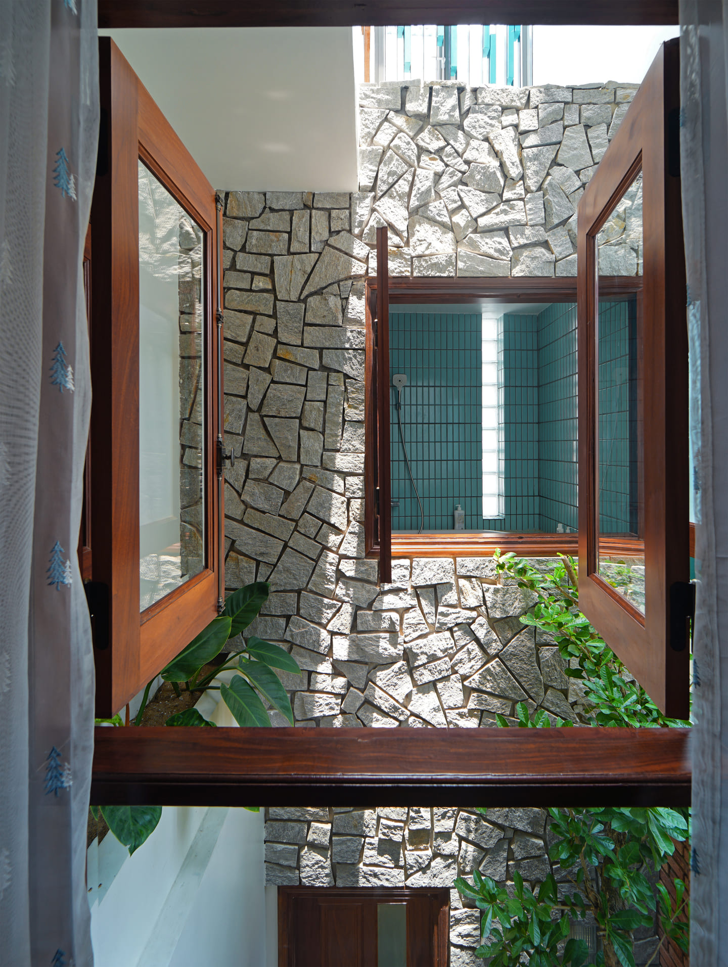 Continually stacked volumes blend into a purposeful whole: the ostentatious one and the shyly another one, both of which nestled with enough setbacks to block the harsh summer sun. The main material, which is true to its name “rustic and quiet”, brings a nostalgia connecting the heritage of tropical architecture.